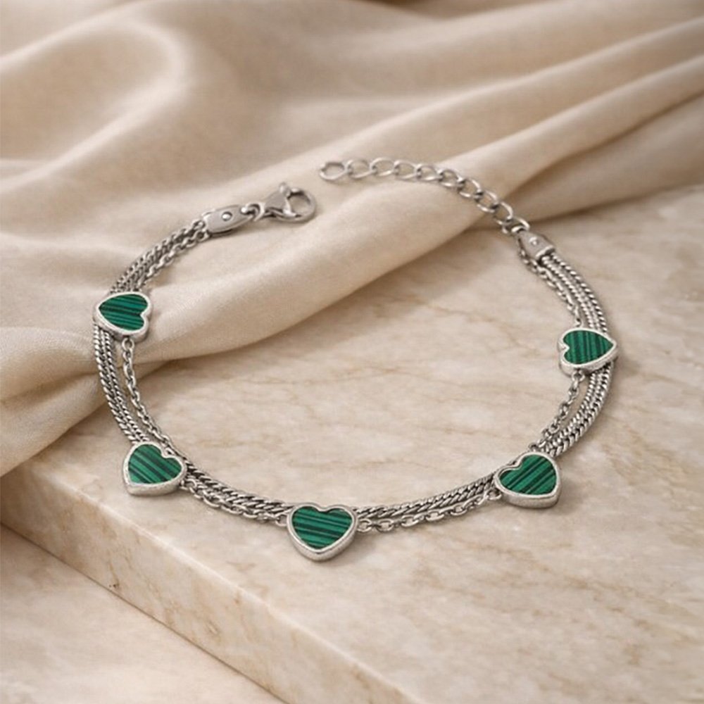 PULSEIRA FOLHEADO COM PEDRA VERDE GOTA E 18 CM