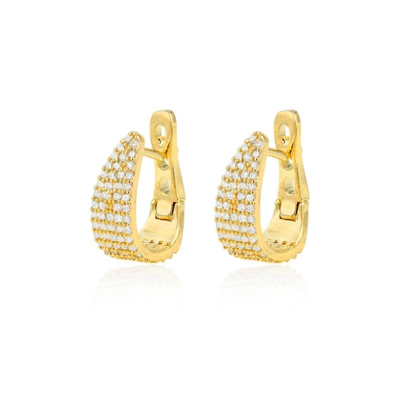 Argola folheada a ouro 18k com zircônia cravejada, unindo brilho sofisticado e acabamento impecável.Dimensões aproximadas:
