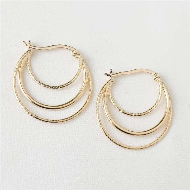 A Argola Folheada Aros Triplos Design Moderno apresenta um visual contemporâneo com três aros harmoniosamente conectados, oferecendo brilho e movimento sofisticado. Sua estrutura elegante realça qualquer produção, trazendo destaque imediato ao look. Uma escolha perfeita para quem deseja empreender com semijoias no atacado direto da fábrica, folheadas a ouro 18k e alinhadas às últimas tendências.Dimensões aproximadas: