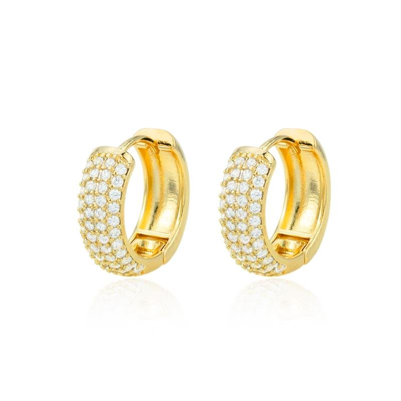 Brilhe com elegância usando a Argola Folheada Cravejada com Zircônias. Seu design sofisticado combina o luxo das pedras com o acabamento em ouro 18k, perfeito para destacar sua presença com glamour.Dimensões aproximadas: