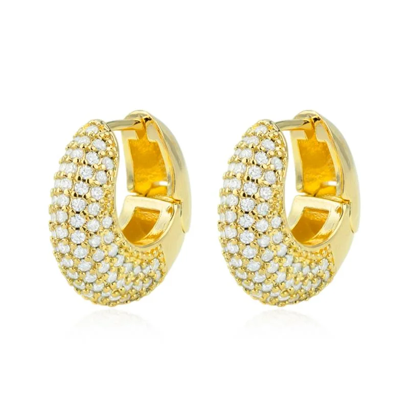 Encante-se com a sofisticação da Argola Folheada Cravejada com Zircônias: brilho intenso, acabamento impecável e elegância atemporal. Ideal para quem deseja empreender com semijoias finas de impacto.Dimensões aproximadas: