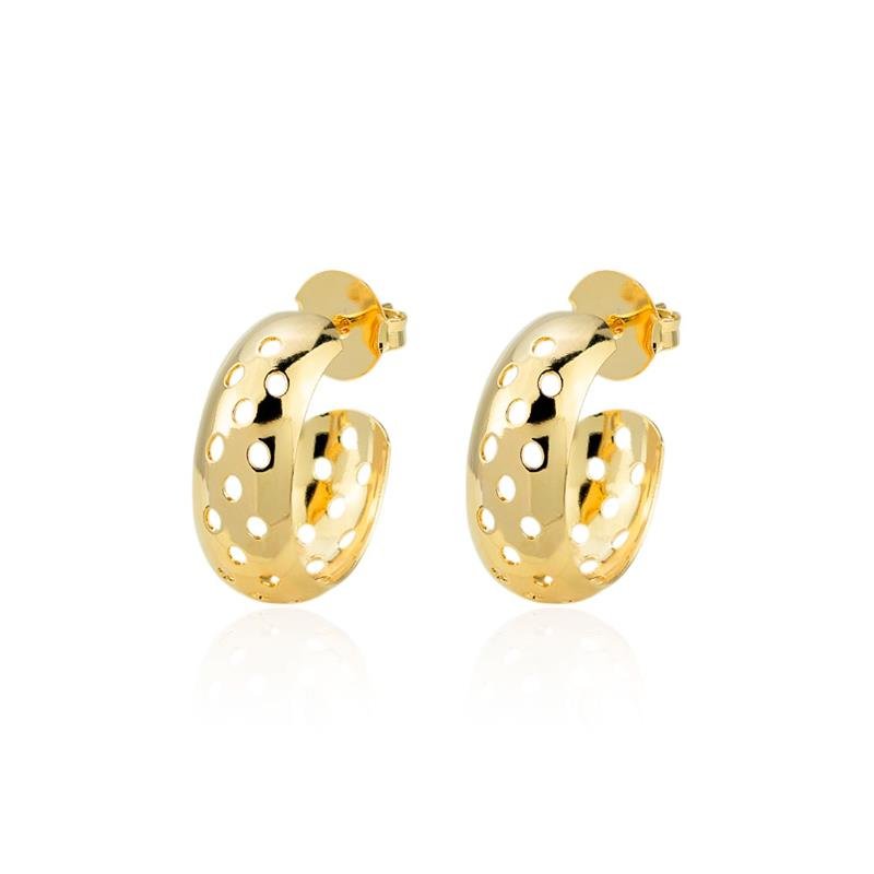 A argola folheada vazada é um clássico que combina delicadeza e modernidade, oferecendo um design elegante e atemporal. Com acabamento impecável em ouro 18k, ela traz um toque sofisticado e refinado ao visual, perfeito para compor looks do dia a dia ou para benefícios especiais.Dimensões aproximadas: