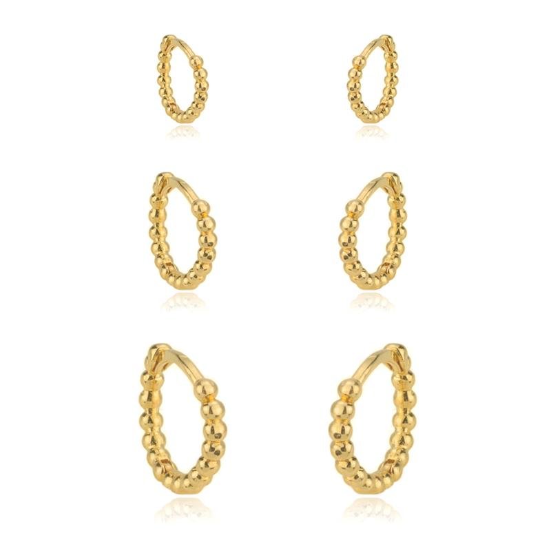 Esta argola sofisticada, folheada em ouro, destaca-se pelo trio de bolinhas delicadas que adornam sua estrutura. Com um design moderno e elegante, é perfeita para complementar qualquer look com um toque de brilho sutil. Ideal para quem busca um acessório versátil e sofisticado.Dimensões aproximadas:
