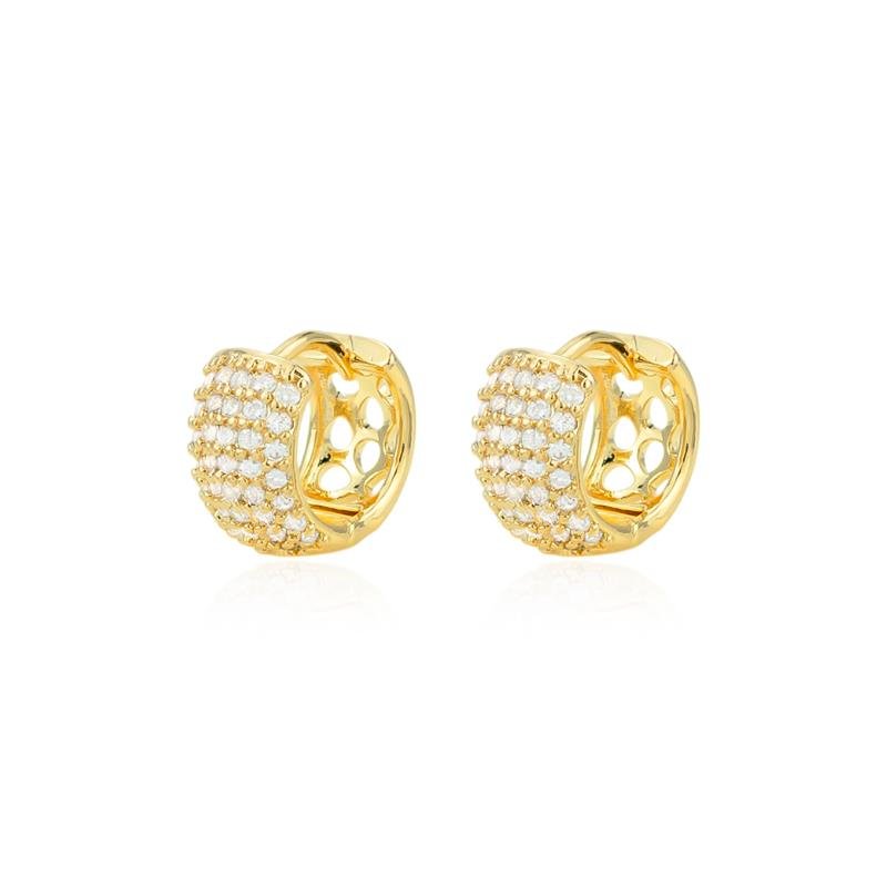 A Argola Folheada Cravejada com Zircônias é puro brilho e sofisticação! Seu design clássico recebe um toque moderno com o acabamento cravejado que valoriza ainda mais a peça.Dimensões aproximadas:
