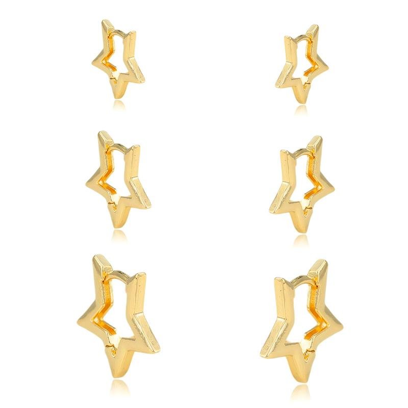 As Argolas Trio Folheada Estrela Lisa são perfeitas para quem busca elegância e modernidade. Com design delicado, essas semijoias folheadas a ouro 18k oferecem brilho intenso e são ideais para compor looks sofisticados. Perfeitas para quem empreende com semijoias finas no atacado, direto da fábrica.Dimensões aproximadas: