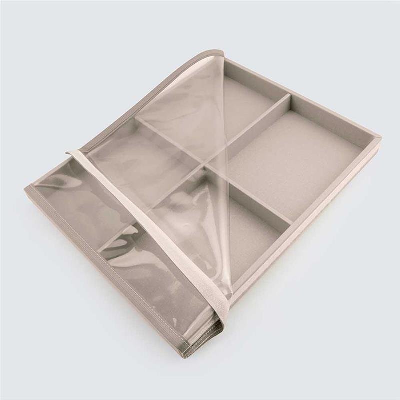 A Bandeja 4 Espaços G com Tampa em napa off white é perfeita para organizar acessórios maiores com sofisticação e praticidade. Seu design moderno e acabamento premium garantem durabilidade e charme ao ambiente. Ideal para joias, relógios ou itens especiais. Uma peça funcional e elegante.Dimensões aproximadas: