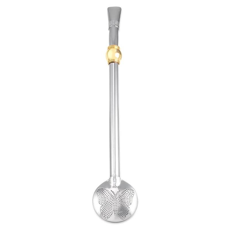 A bomba co bojo removível - borboleta 841 furos - une sofisticação e tradição no preparo do chimarrão. Seu detalhe folheado garante charme e elegância, além de resistência para o uso diário. Uma peça refinada para quem aprecia estilo e qualidade em cada momento.Dimensões aproximadas: