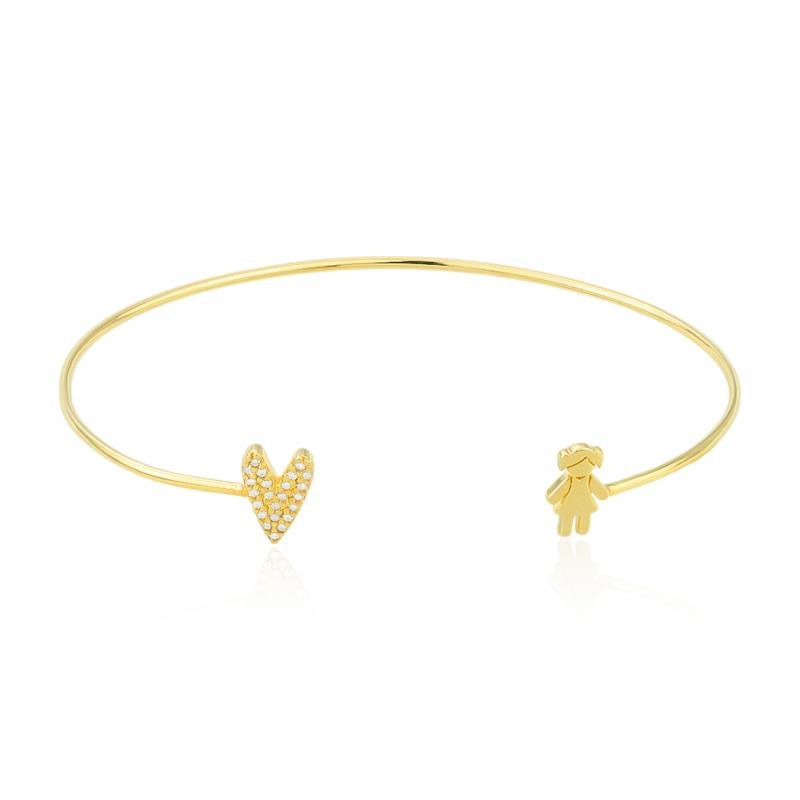 O bracelete folheado coração/menina é uma peça delicada e cheia de significado, perfeita para celebrar o amor maternal. Com banho de ouro 18k e design encantador, une charme e sofisticação em um acessório versátil.Dimensões aproximadas: