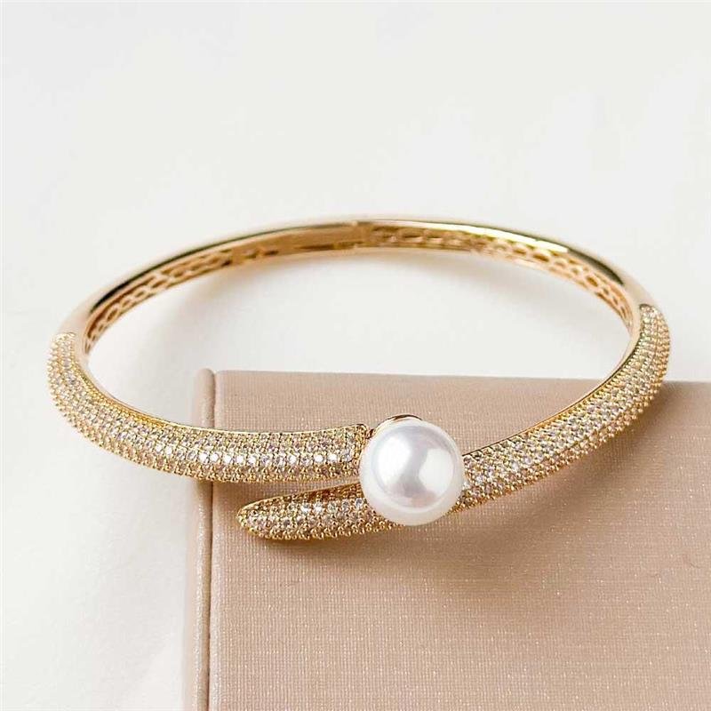 O Bracelete Folheado Cravejado Pérola une sofisticação e delicadeza em um design elegante e atemporal. A pérola central ganha destaque com o brilho dos detalhes cravejados, elevando qualquer produção. Folheado a ouro 18k, é perfeito para composições refinadas e ocasiões especiais. Ideal para quem deseja emprender com semijoias finas e seguir as principais tendências.Dimensões aproximadas: