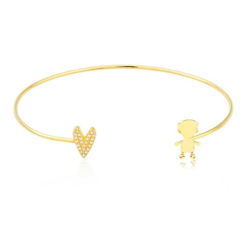 O Bracelete Folheado Menino Coração Cravejado une delicadeza, brilho e significado em uma peça especial. O pingente de menino, acompanhado do coração cravejado, destaca o charme da folheação em ouro 18k. Moderno e cheio de afeto, combina perfeitamente com as tendências atuais. Ideal para empreender com semijoias finas no atacado direto da fábrica.Dimensões aproximadas: