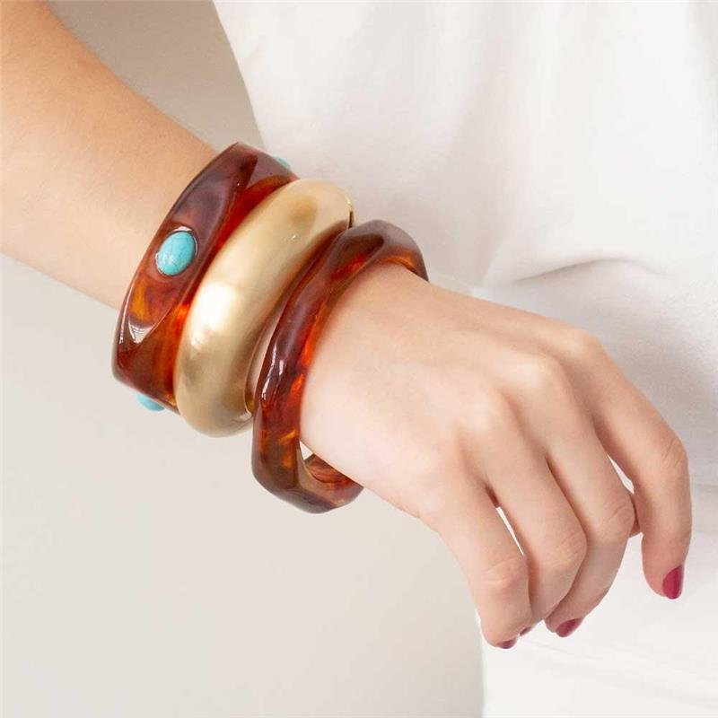 O Bracelete Trio Âmbar Turquesa une cores quentes e vibrantes em um design moderno e sofisticado. Sua combinação de tons proporciona personalidade e estilo a qualquer produção, seja casual ou elegante. Seguindo as tendências de semijoias finas, é ideal para empreender com semijoias no atacado direto da fábrica.Dimensões aproximadas: