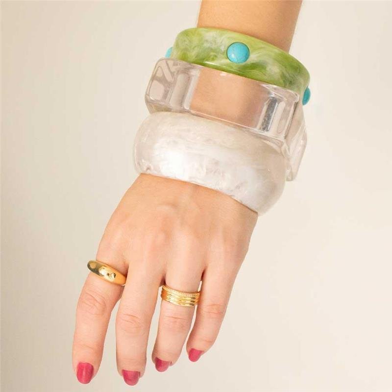 O Bracelete Trio Glamour Mesclado combina elegância e modernidade em três peças que se complementam com brilho sofisticado. Seu design mesclado cria um visual marcante, perfeito para elevar qualquer look com personalidade. Ideal para quem busca semijoias de impacto e alta qualidade. Uma escolha luxuosa para revender e encantar suas clientes.Dimensões aproximadas: