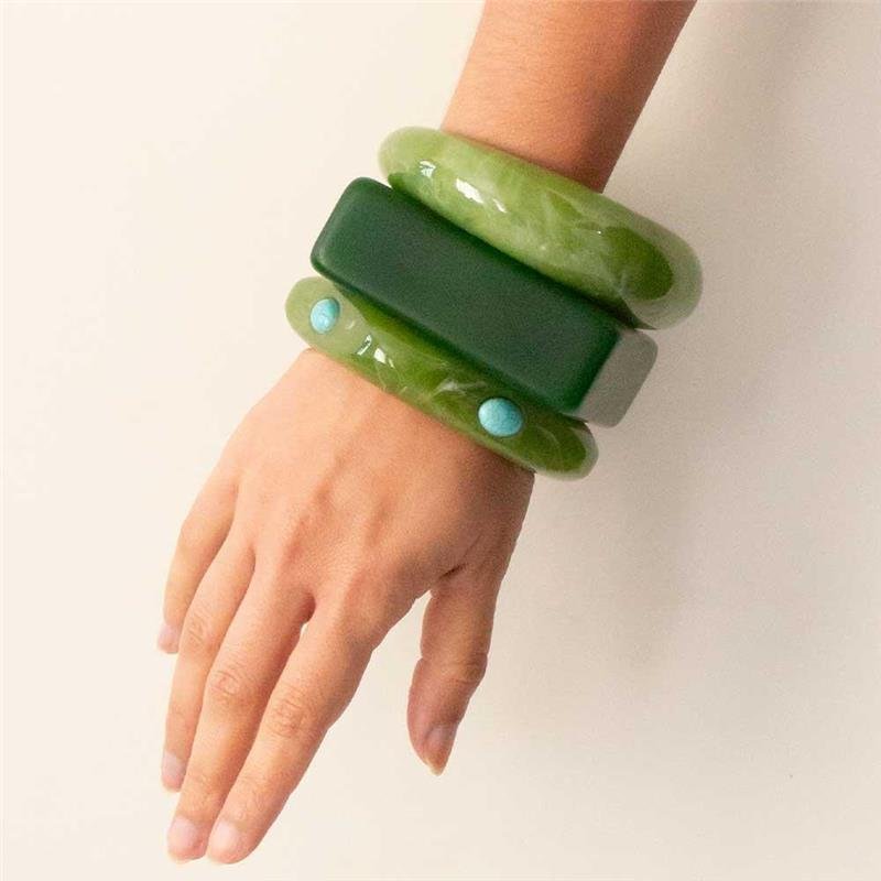 O Bracelete Trio Resina Verde combina sofisticação e modernidade, destacando o verde vibrante em um design elegante e versátil. Perfeito para adicionar cor e estilo a qualquer produção, seja casual ou mais elaborada. Seguindo as tendências de semijoias finas, é ideal para empreender com semijoias no atacado direto da fábrica.Dimensões aproximadas: