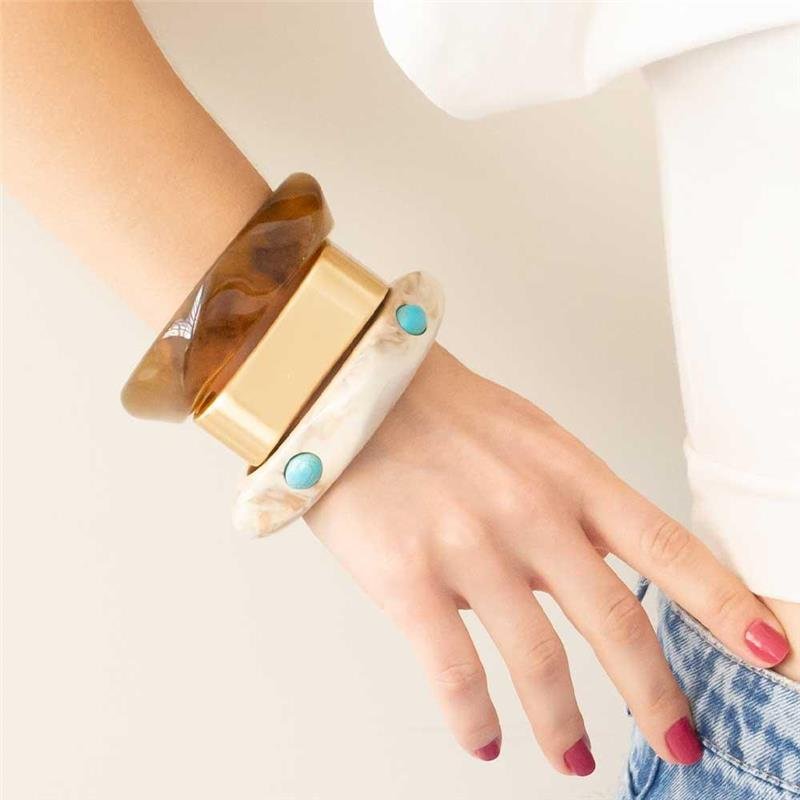 O Bracelete Trio Turquesa Dourado Fosco combina elegância e modernidade, unindo o tom turquesa vibrante ao acabamento dourado fosco. Seu design sofisticado e versátil valoriza qualquer look, do casual ao mais elaborado. Seguindo as tendências de semijoias finas, é ideal para empreender com semijoias no atacado direto da fábrica.Dimensões aproximadas: