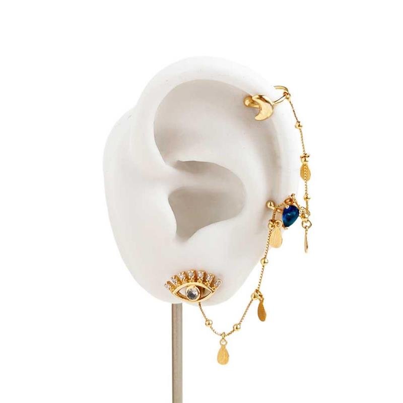 Brinco com piercing em design moderno, trazendo um olho cravejado de pedras brilhantes que simboliza proteção e estilo. Sua delicadeza combina sofisticação com um toque ousado, ideal para quem busca destacar a personalidade com acessórios únicos. Feito em material de alta qualidade, garante conforto e durabilidade.Dimensões aproximadas: