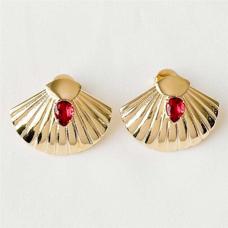 O Brinco Folheado Concha do Mar Detalhada Pedra Gota Vermelha combina elegância marítima e luxo vibrante em uma peça única. Sua concha minuciosamente trabalhada realça a pedra vermelha em formato de gota, trazendo intensidade e charme ao visual. Perfeito para quem busca semijoias finas e modernas, ideal para empreender com semijoias no atacado folheadas a ouro 18k direto da fábrica. Uma escolha marcante dentro das tendências atuais.Dimensões aproximada: