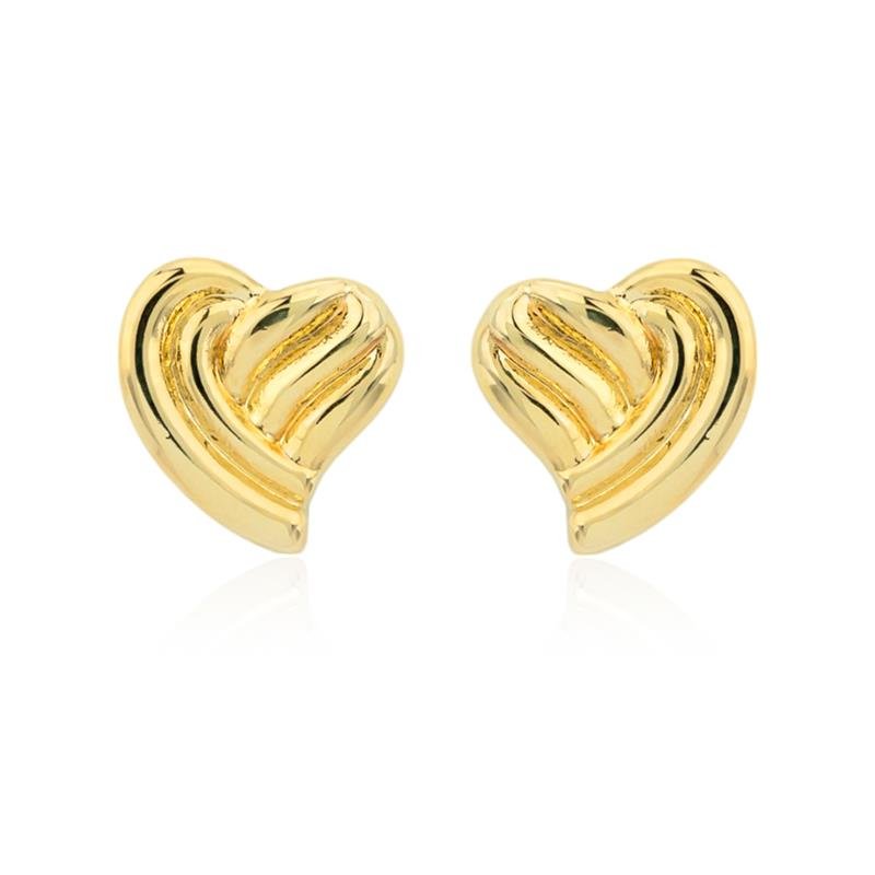 Brinco folheado em formato de coração, com detalhes delicados que realçam o brilho e a elegância da peça. Perfeito para compor um look romântico ou sofisticado, ele traz um toque de charme e feminilidade.Dimensões aproximadas: