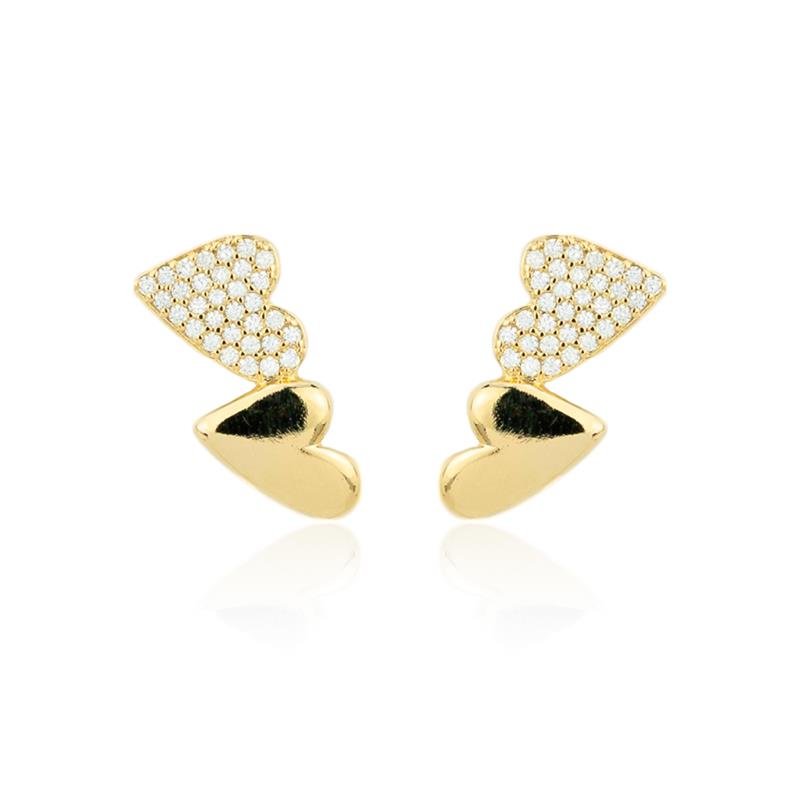 O Brinco Folheado Coração Cravejado Duplo é a união perfeita entre brilho e romantismo. Com dois corações cravejados com zircônias, ele destaca a beleza em cada detalhe, sendo ideal para composições elegantes e sofisticadas.Dimensões aproximadas: