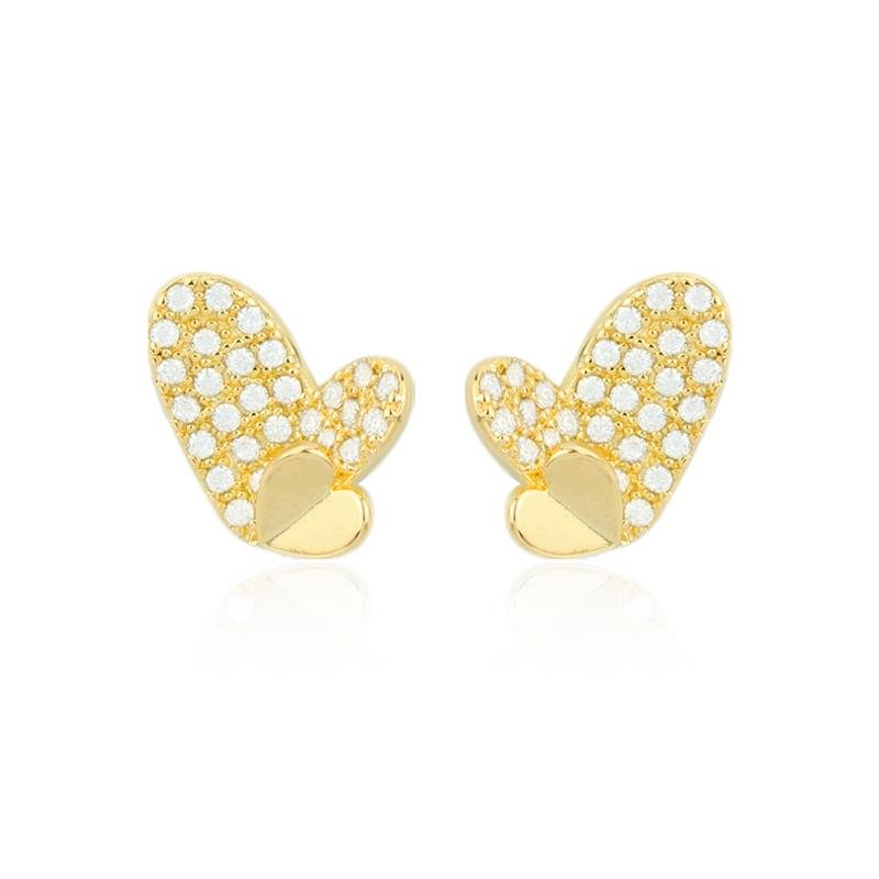 Brinco Folheado Coração Cravejado Zircônias é puro encantamento. Seu formato delicado ganha ainda mais destaque com o brilho intenso das zircônias cravejadas, ideal para quem ama peças românticas e sofisticadas.Dimensões aproximadas:
