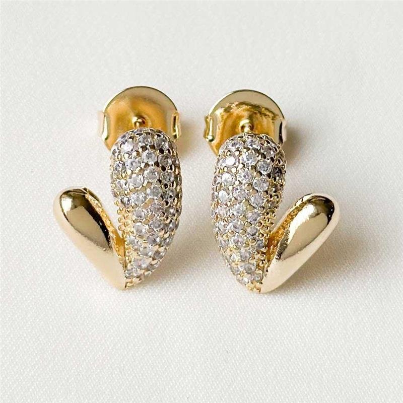 O Brinco Folheado Coração Zircônia Meia Volta Cravejada combina romantismo e sofisticação em um design delicado. Suas zircônias cravejadas na meia volta do coração garantem brilho intenso, ideal para semijoias finas que valorizam qualquer look com charme.Dimensões Aproximadas: