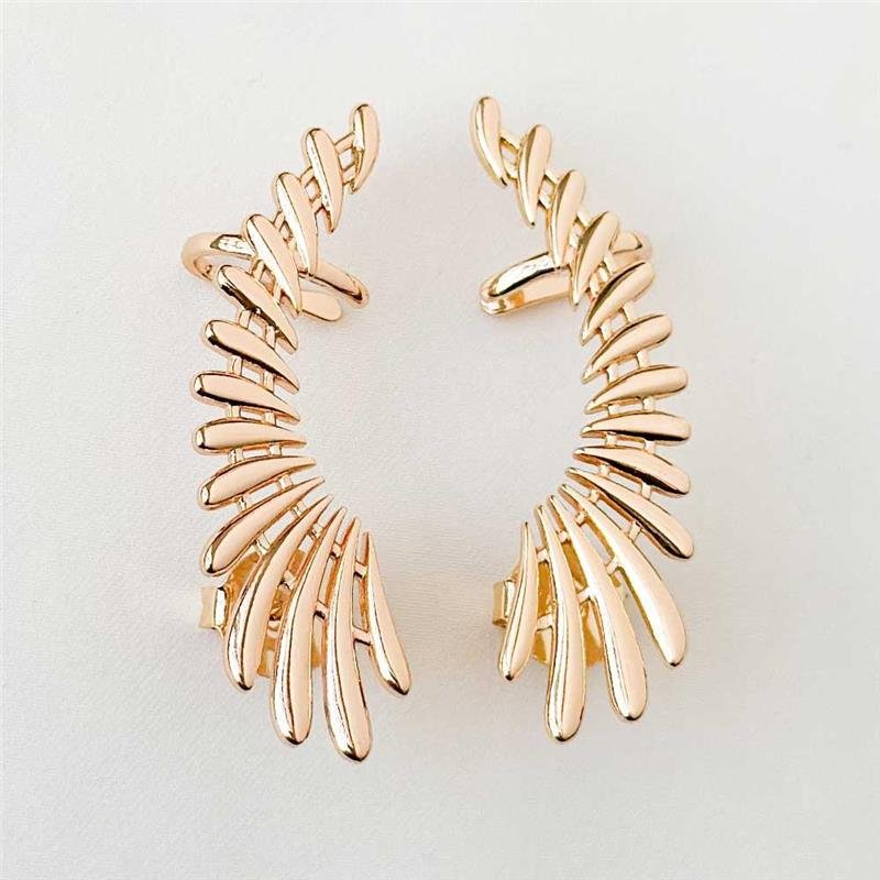 O Brinco Folheado Ear Cuff Maxi Pena Texturizada combina leveza e imponência em um design único. Sua textura detalhada em formato de pena cria um efeito moderno e sofisticado, ideal para mulheres que amam acessórios marcantes. Uma peça que traduz elegância e personalidade, perfeita para elevar qualquer look.Dimensões aproximadas: