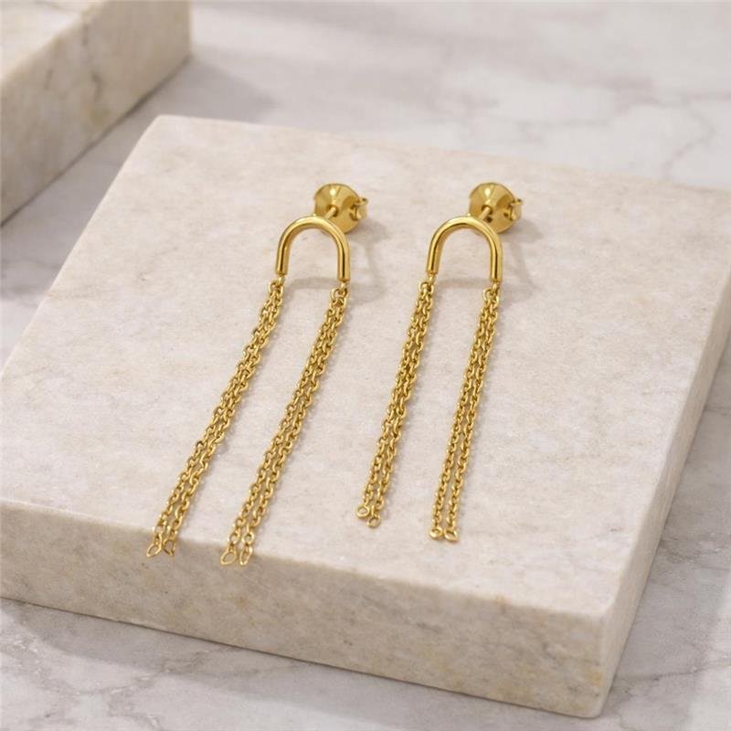 O brinco folheado com fios e detalhes é uma peça que une elegância e sofisticação. Seus fios finos e os detalhes refinados adicionam um toque de glamour sutil, ideal para complementar qualquer look com um charme extra. Perfeito para quem deseja um acessório versátil, que se destaca tanto em ocasiões especiais quanto no uso diário.Dimensões aproximadas:
