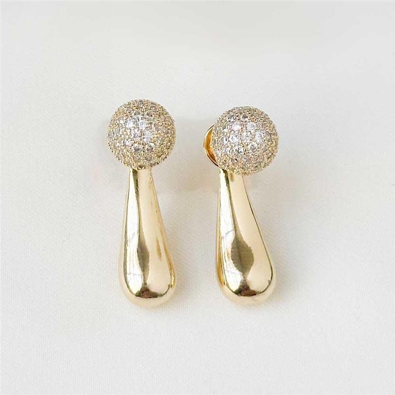 O Brinco Folheado Gota Esfera Cravejada revela um brilho sofisticado com sua combinação de design clássico e pedraria reluzente. Uma peça que eleva qualquer look, unindo elegância moderna e acabamento folheado a ouro 18k. Ideal para quem busca semijoias finas e tendências perfeitas para empreender com semijoias no atacado direto da fábrica.Dimensões aproximadas: