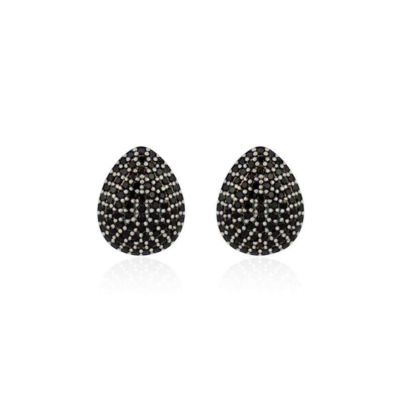 Um brinco sofisticado e imponente! O design oval folheado a ouro 18K é realçado pelo brilho intenso das zircônias negras cravejadas, criando um acessório perfeito para quem busca elegância e exclusividade.Dimensões aproximadas: