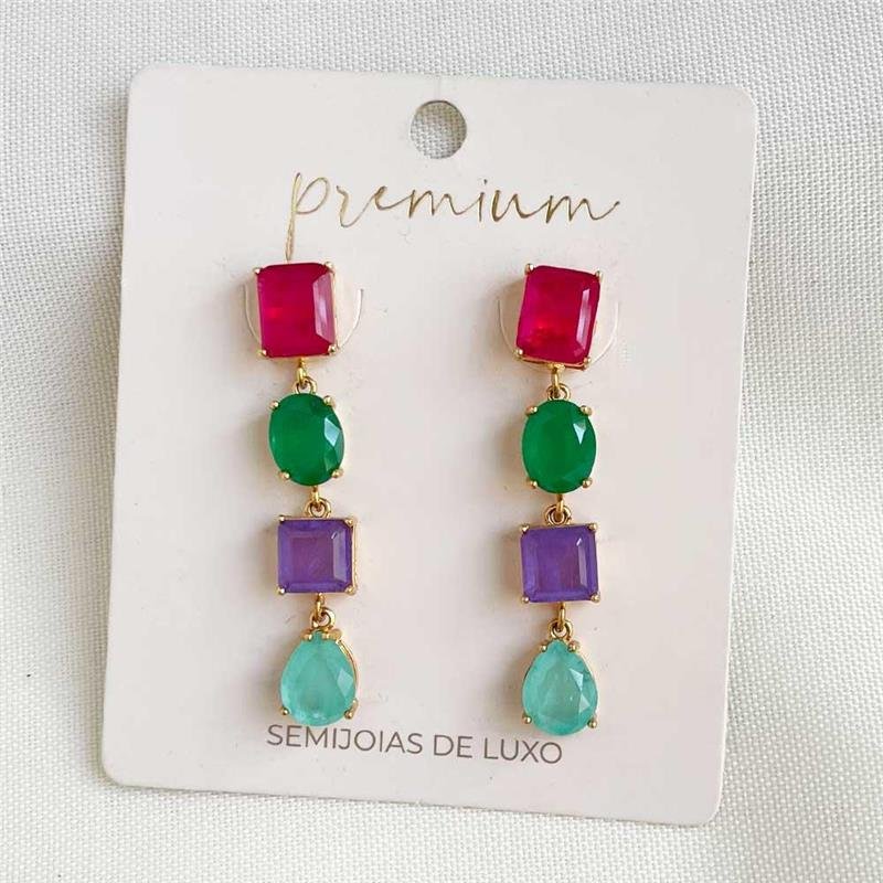 O Brinco Folheado Pedra Fusion Coloridas une brilho intenso e design refinado. As pedras fusion exibem tons vibrantes que refletem elegância e modernidade. Uma peça que transforma o visual com sofisticação e charme singular.Dimensões aproximadas: