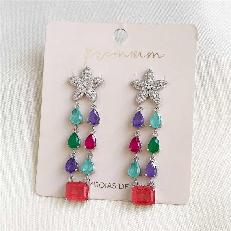 O brinco folheado a ródio com flor e pedras coloridas combina elegância e delicadeza em um único acessório. Seu design floral traz um toque de feminilidade, enquanto as pedras coloridas adicionam vivacidade e brilho, perfeito para complementar qualquer estilo com sofisticação e charme.Dimensões aproximadas: