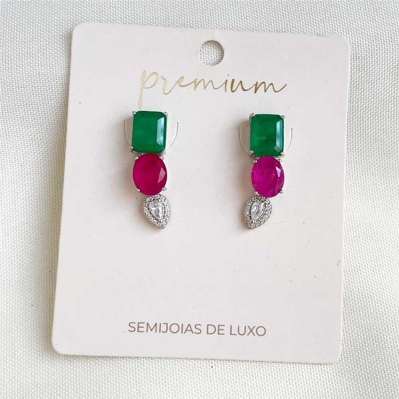 Brinco folheado a ródio branco, com design elegante e sofisticado. Apresenta uma pedra colorida central, que é delicadamente cravejada para um brilho adicional. Ideal para ocasiões especiais ou para adicionar um toque de glamour ao dia a dia. Um acessório indispensável para quem busca estilo e sofisticação.Dimensões aproximadas: