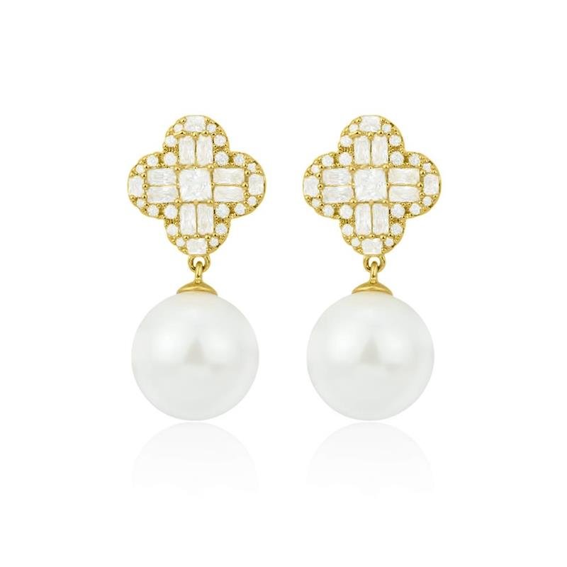 O Brinco Folheado Trevo Cravejado Pérola Shell simboliza elegância, sorte e delicadeza. Com cravejamento refinado e acabamento impecável, valoriza o brilho suave da pérola shell. Uma semijoia atemporal, perfeita para compor looks sofisticados e cheios de charme.Dimensões aproximadas: