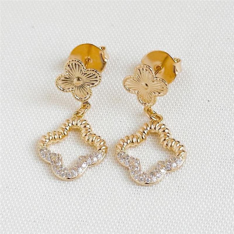 O Brinco Folheado Trevo Cravejado simboliza sorte e elegância em um design delicado e sofisticado. As zircônias cravejadas realçam o brilho do ouro 18k, trazendo charme e luminosidade ao visual. Ideal para compor looks modernos, é perfeito para quem deseja empreender com semijoias finas e acompanhar as tendências em semijoias.Dimensões aproximada: