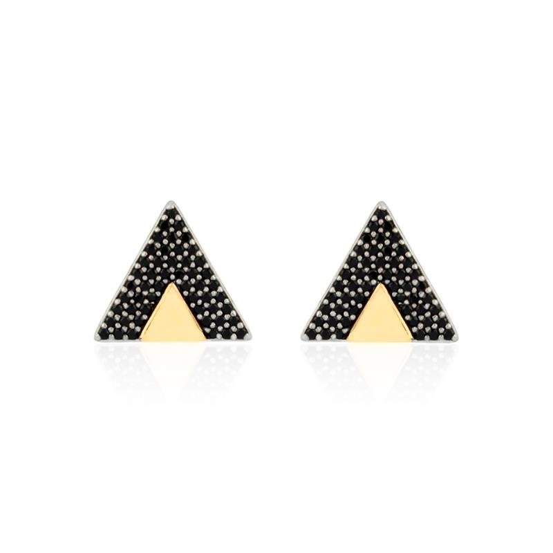 Elegância e sofisticação definem este brinco folheado em formato de triângulo, todo cravejado com zircônias negras. Uma peça marcante e moderna, perfeita para quem busca um toque de luxo em cada detalhe. Ideal para compor looks refinados com um brilho intenso e atemporal.Dimensões aproximadas:
