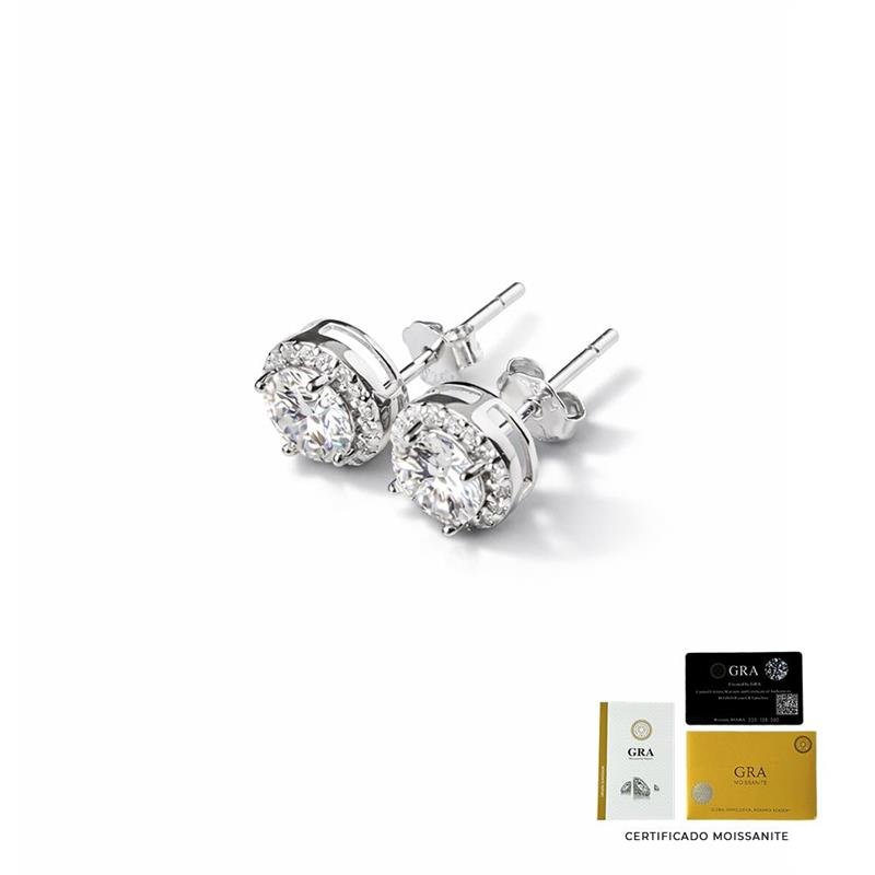 O Brinco Ponto de Luz Borda Cravejada Moissanite Prata 925 com banho em ródio | acompanha porta joias traduz luxo e brilho intenso.A moissanite central com borda cravejada realça a luminosidade e o acabamento premium.