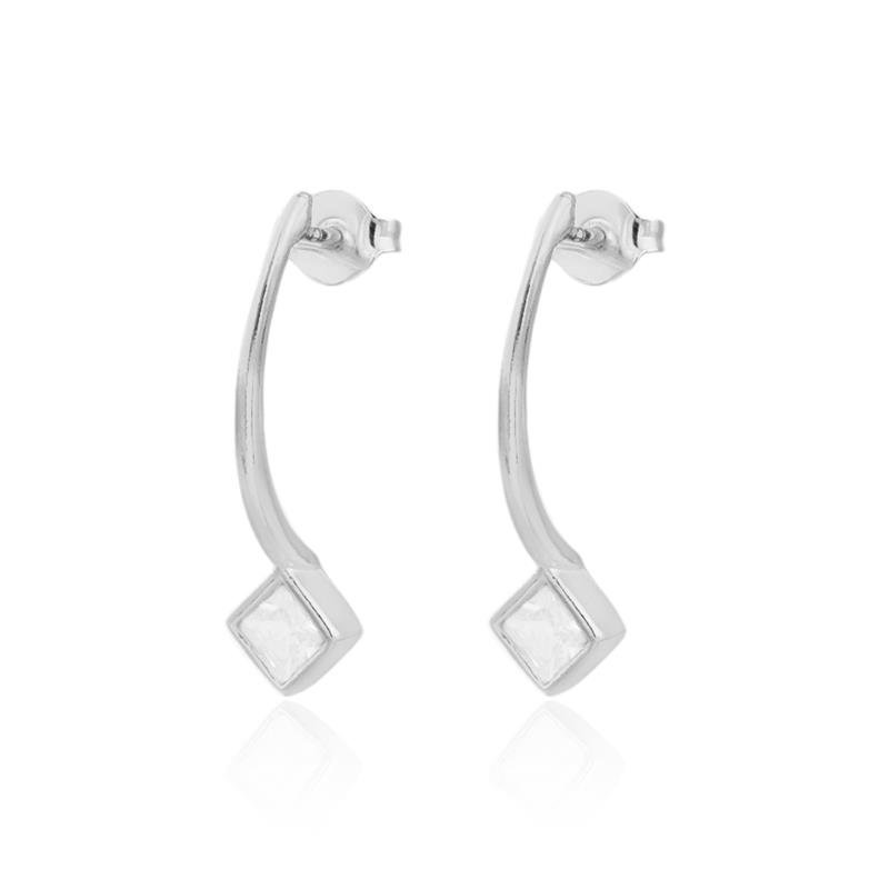 O brinco prata retângulo ponto de luz é uma peça moderna e elegante, com design geométrico e brilho sutil das zircônias.Altura: 3,0 CM