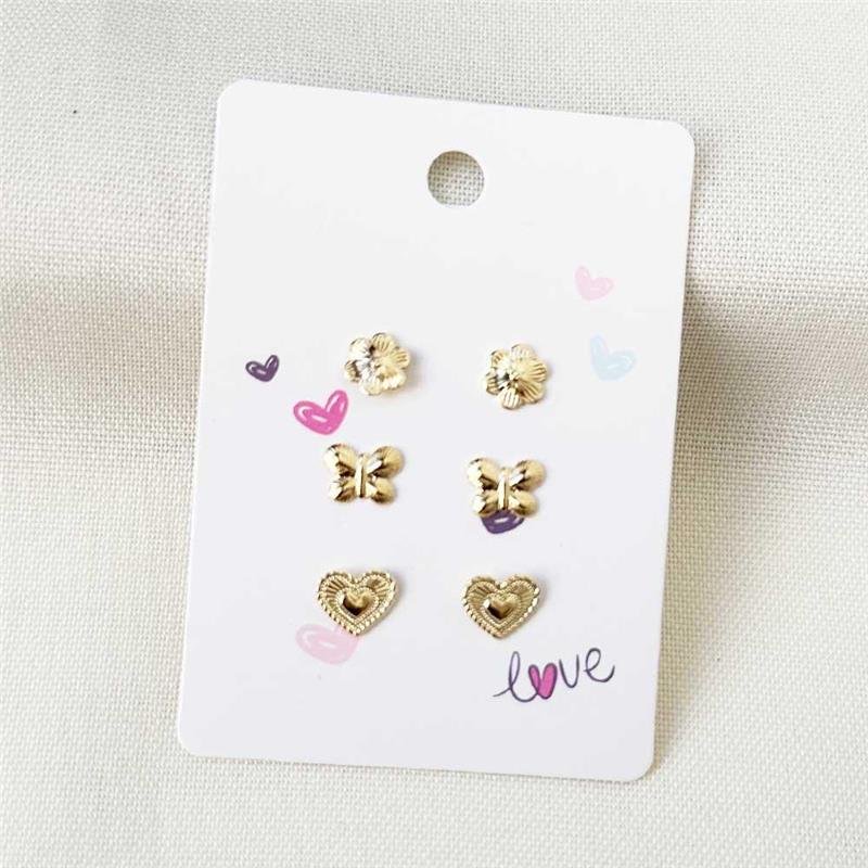 Encante com o Brinco Trio Folheado Flor Borboleta Coração - Infantil, uma delicada composição que une charme, brilho e ternura. Ideal para presentear, este trio combina sofisticação com leveza, trazendo o toque especial das semijoias folheadas a ouro 18k.Dimensões aproximadas: