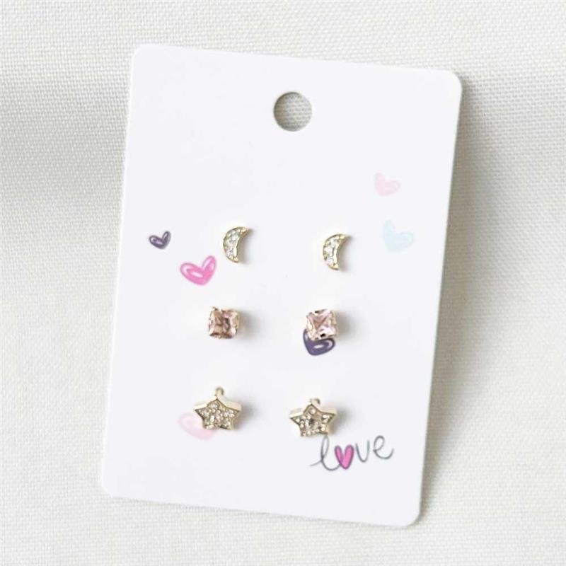 Encante com o charme do Brinco Trio Folheado Lua Estrela - Infantil, delicadamente folheado a ouro 18k. Uma peça cheia de brilho e significado, perfeita para complementar a doçura das pequenas.Dimensões aproximadas: