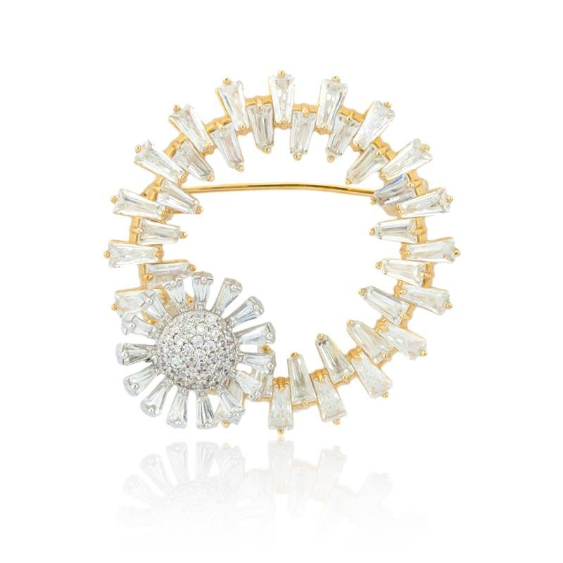 O Broche Folheado Redondo Baguete é uma peça sofisticada que traz elegância e brilho para qualquer look. Com design exclusivo, ele é perfeito para quem busca semijoias de alta qualidade, folheadas a ouro 18k. Ideal para quem aprecia tendências e deseja aprender no mercado de semijoias finas no atacado.Dimensões aproximadas: