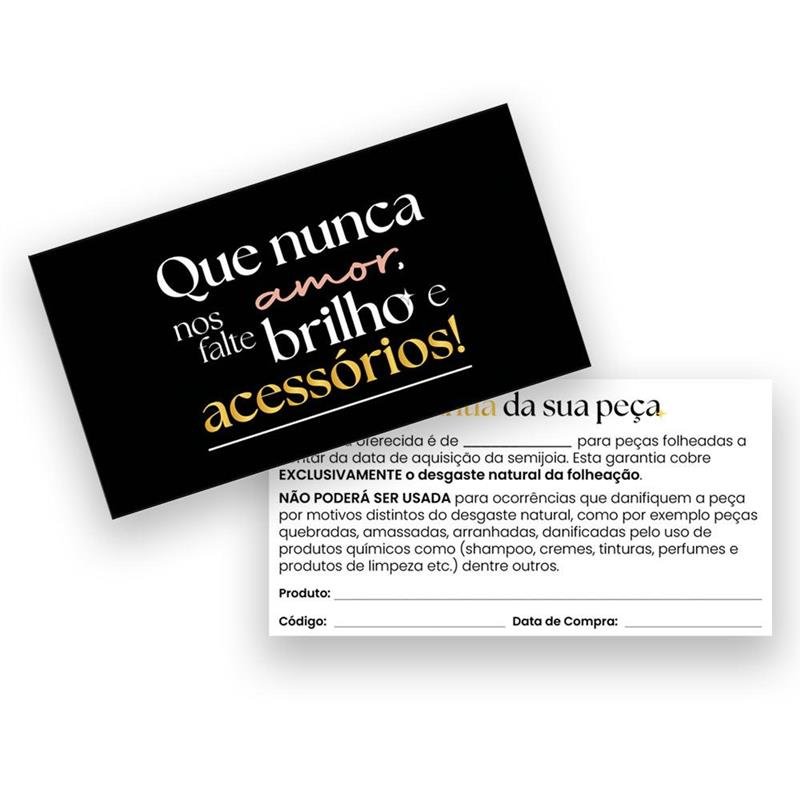 O Certificado de Garantia assegura a procedência, qualidade e durabilidade das semijoias. Transmite confiança ao cliente final e agrega valor à sua marca. Essencial para quem trabalha com semijoias finas e busca credibilidade nas vendas.Dimensões aproximadas: