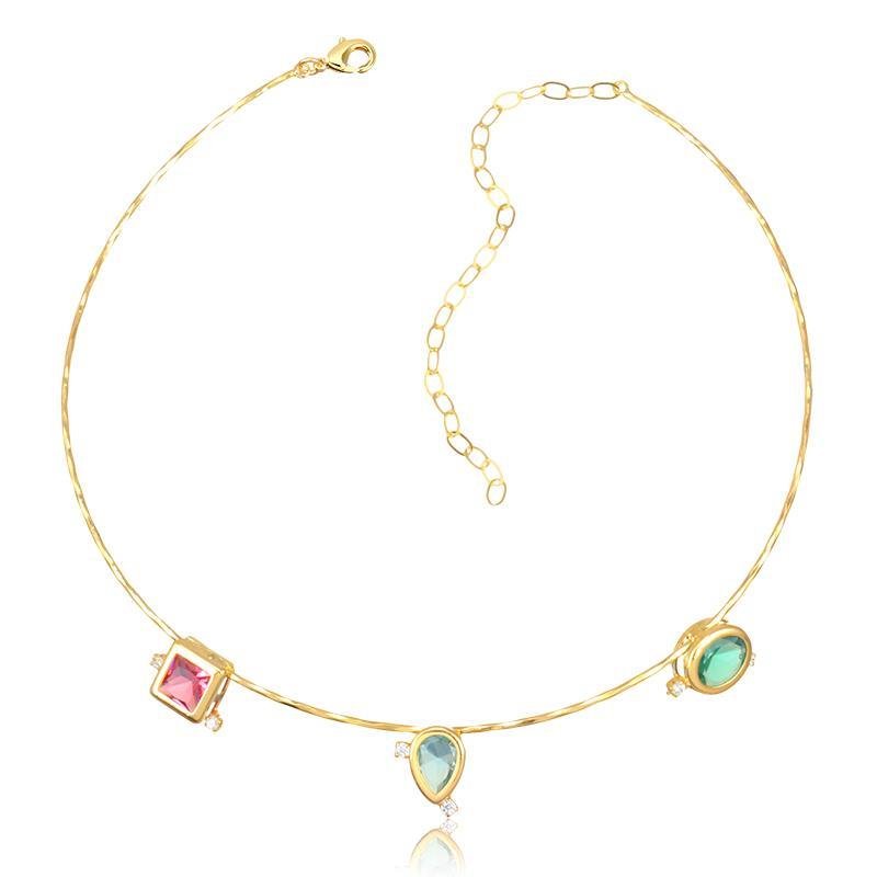 A Gargantilha Aro Folheada Pedras Color combina sofisticação e alegria em um design moderno e elegante. As pedras coloridas trazem leveza e personalidade, valorizando o colo com brilho delicado. Uma semijoia versátil e atual, perfeita para compor looks modernos e cheios de estilo.Dimensões aproximadas: