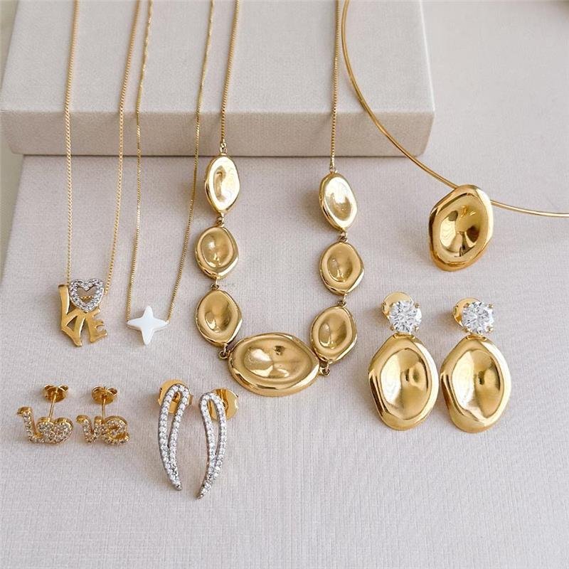 O Combo Brilho um mixd encantador com aro, gargantilhas de estrela e "Love" e delicadas , brinco placa, brinco "Love" cravejado e um modelo vazado cravejado. Peças folheadas a ouro 18k, que traduzem afeto e sofisticação. Ideal para quem busca semijoias tendências com brilho eterno.Dimensões aproximadas: