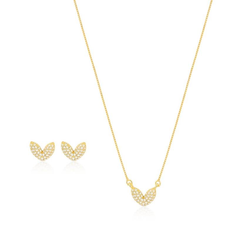 O Conjunto Folheado Coração Cravejado - 45 cm é pura elegância, perfeito para quem ama brilho e sofisticação. Ideal para quem busca semijoias finas no atacado, direto da fábrica, com folheação em ouro 18k e acabamento impecável. Aposte nessa tendência e empreenda com semijoias de sucesso!Dimensões aproximadas: