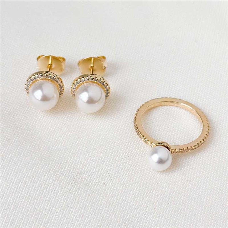 O Conjunto Folheado Pérola Anel e Brincos Cravejados traz a união perfeita entre o clássico das pérolas e o brilho sofisticado das zircônias. Cada detalhe foi pensado para transmitir elegância e delicadeza, valorizando qualquer produção. Ideal para empreender com semijoias finas, é uma peça tendência no atacado direto da fábrica, folheada a ouro 18k com acabamento impecável.Dimensões aproximadas: