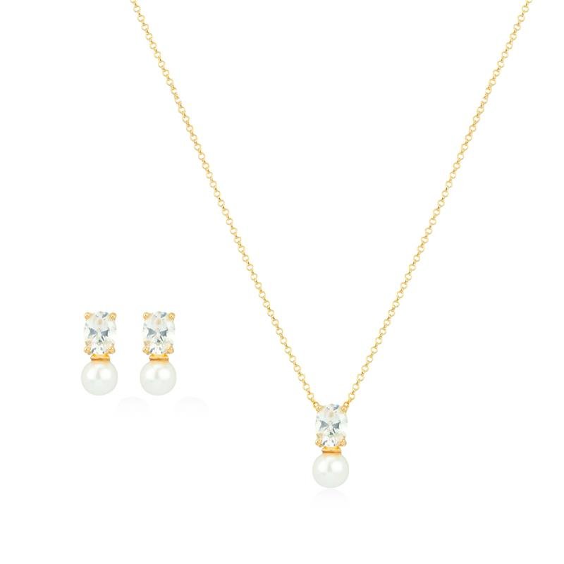 O CONJUNTO FOLHEADO PÉROLA COM PONTO DE LUZ - 45 CM é a união perfeita entre a delicadeza da pérola e o brilho sofisticado da zircônia. Com folheação a ouro 18k, traz um visual atemporal e elegante.Dimensões aproximadas: