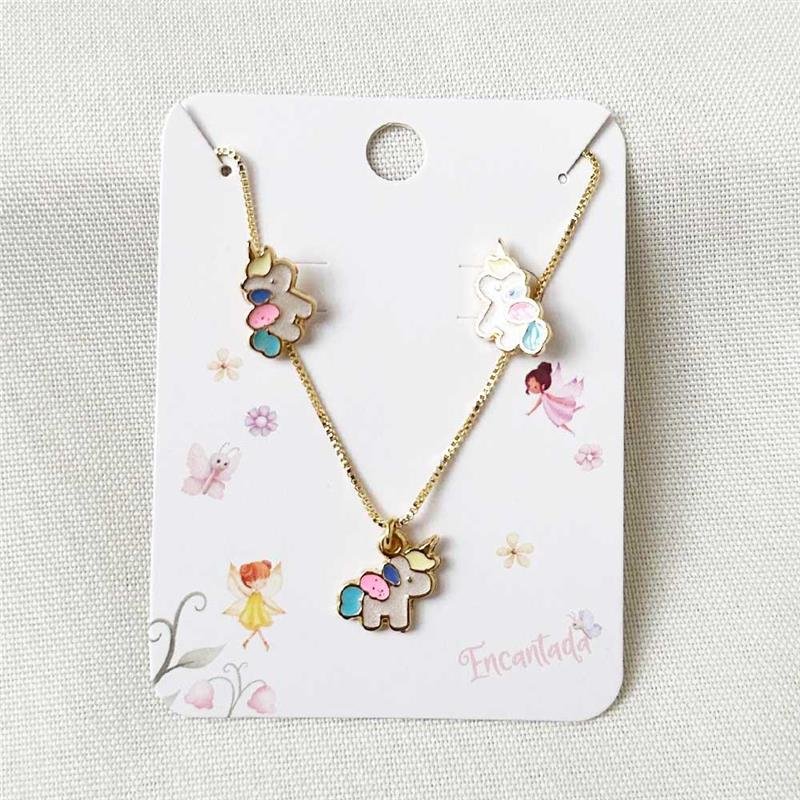 Encante os pequenos com o Conjunto Folheado Unicórnio - Infantil, delicado e cheio de charme. Ideal para presentear, esse conjunto é folheado a ouro 18k, garantindo brilho e qualidade. Perfeito para complementar looks infantis com estilo e segurança.Dimensões aproximadas