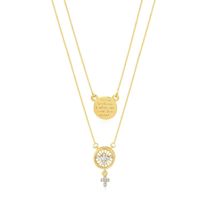 O Escapulário Folheado com Espírito Santo, Cruz Cravejada e Medalha é uma expressão de fé e proteção. Com seus detalhes refinados, simboliza a orientação divina e a bênção do Espírito Santo, oferecendo estilo e devoção em uma única peça.Dimensões aproximadas: