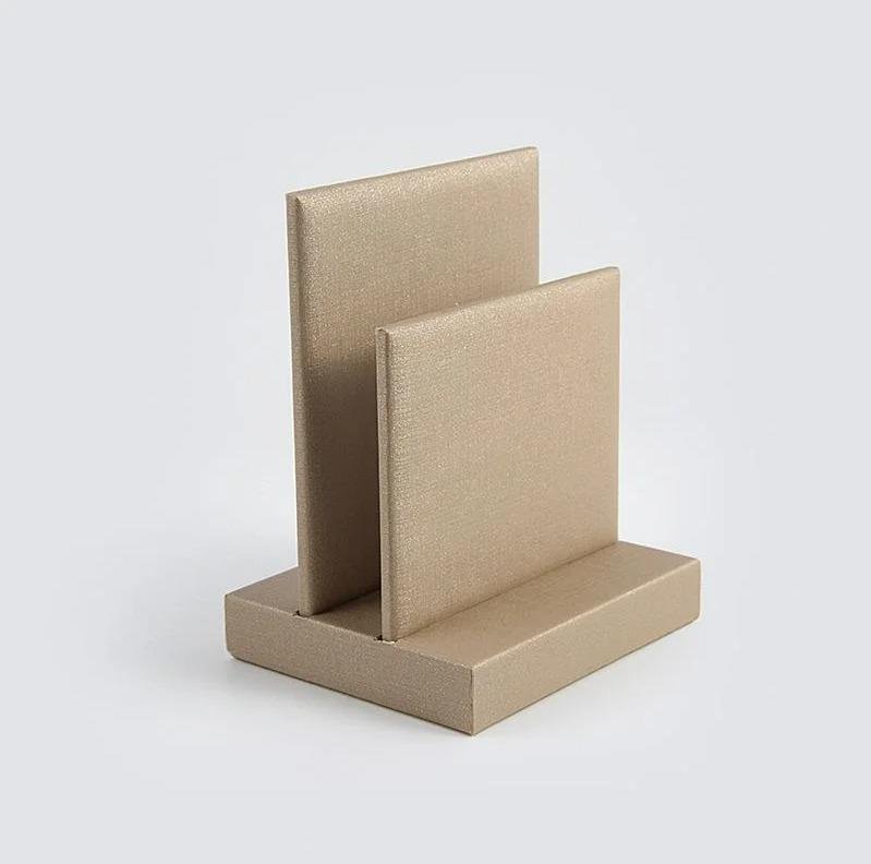 O Expositor Piercing Perso Napa Dourada Único é ideal para destacar piercings personalizados com elegância. Com acabamento sofisticado em napa champagne, valoriza cada detalhe das peças expostas. Seu design compacto e exclusivo é perfeito para vitrines refinadas e apresentações de impacto.Dimensões aproximadas: