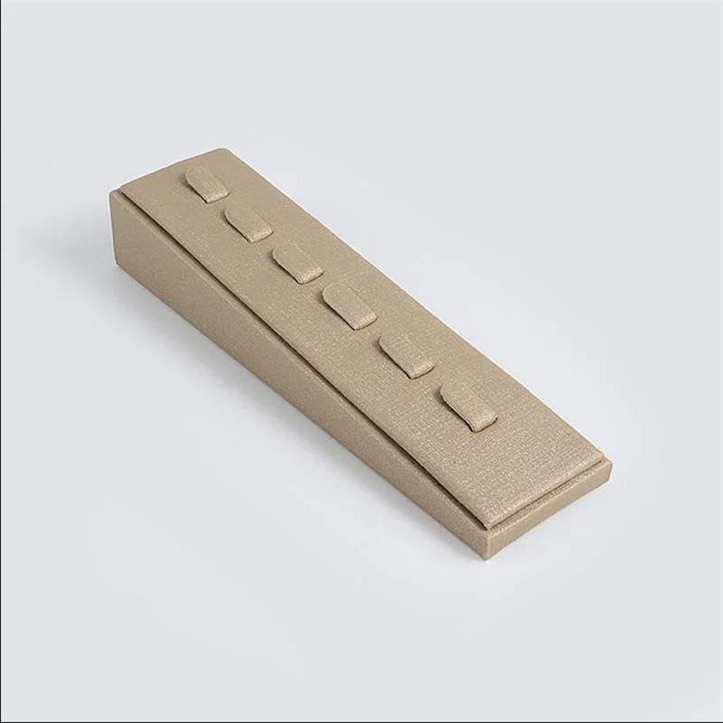 O Expositor Rampa Multi Anéis em Napa Dourada é ideal para valorizar suas peças com sofisticação e praticidade. Com acabamento elegante, organiza e destaca anéis com charme em vitrines ou mostruários.Dimensões aproximadas: