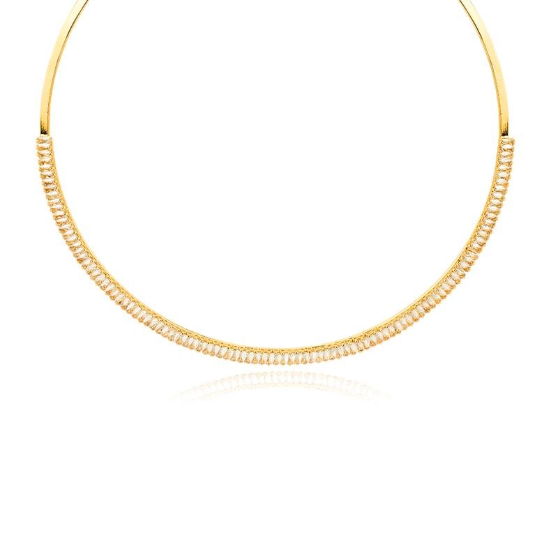 A Gargantilha Aro com Zircônia Baguete une sofisticação e modernidade em um design único. Com acabamento folheado a ouro 18k, destaca-se pelo brilho elegante das zircônias baguete, proporcionando um toque de luxo para qualquer ocasião. Ideal para quem busca semijoias finas e exclusivas diretamente da fábrica.Dimensões aproximadas: